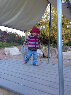 October 4, 2014 - Mommy and I thought there would still be sun at the Down Valley Park in the afternoon, but it was in the shade already. It was a little chilly, but I had a great time swinging, throwing rocks in the pond, and going down the big slide. Mommy was a little nervous about the slide, but I did just fine!!